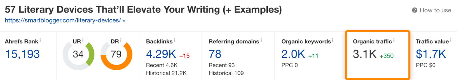 With the post generating an estimated ~3,100 monthly search visits, Sarah is almost certainly getting a decent number of leads each month.