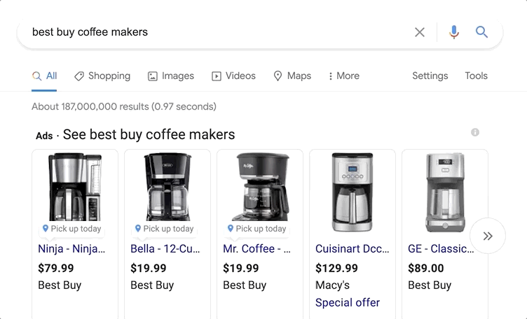 Think about a keyword like “best buy coffee makers.”