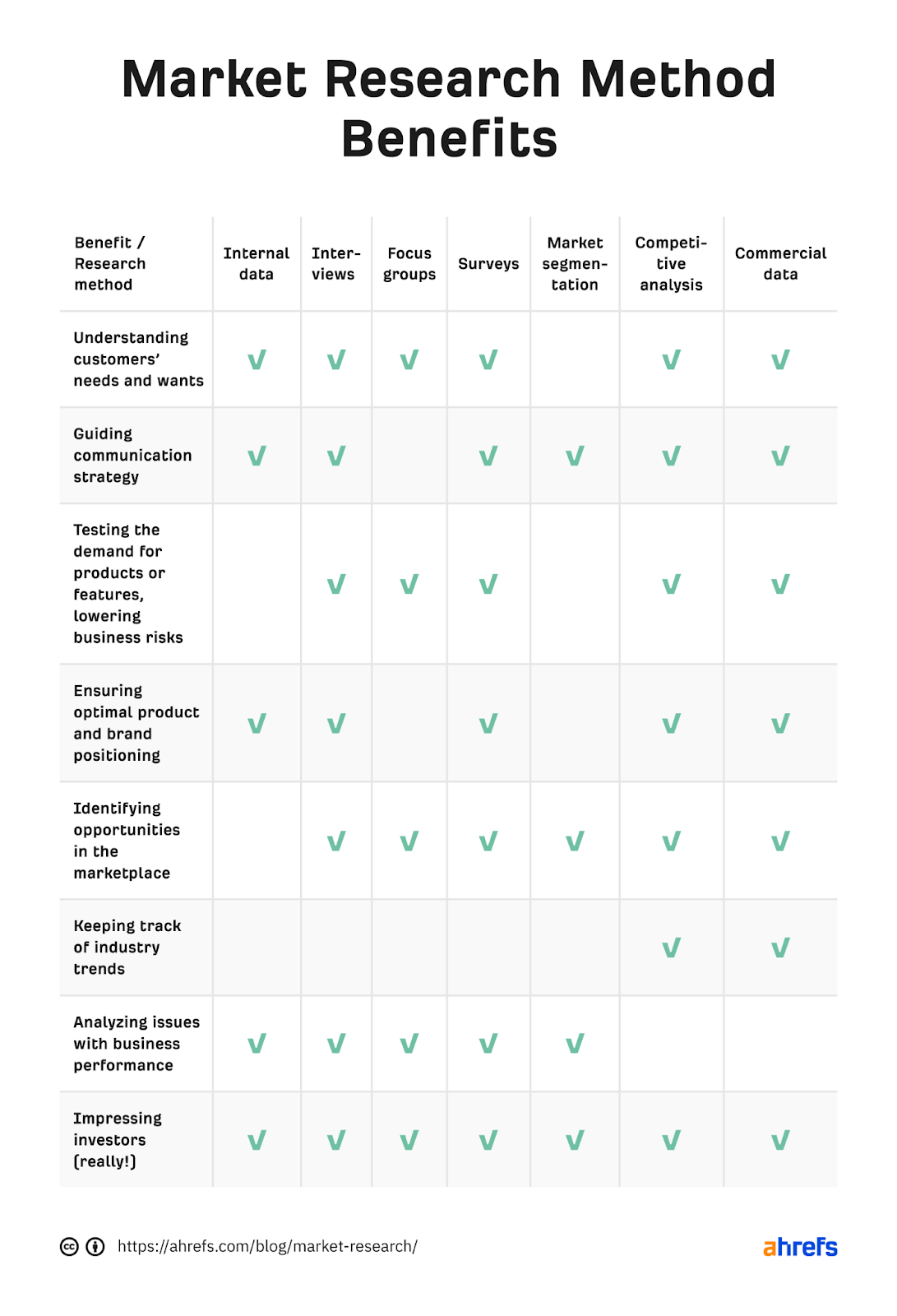 Let’s quickly summarize the above 7 different methods of market research by their key benefits.
