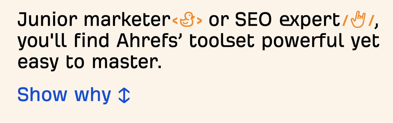 At Ahrefs, besides our logo and the color blue, we also have two more brand codes. The first is our custom font: