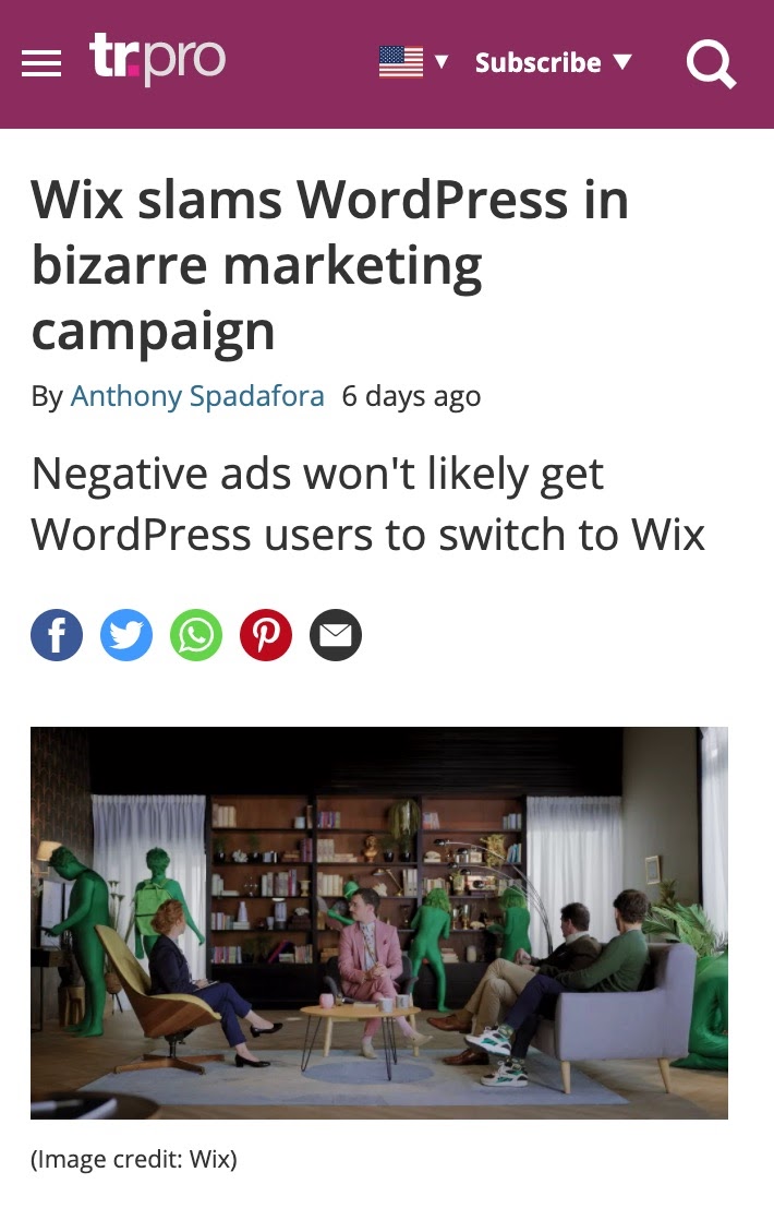 This is from Techradar’s reaction to Wix’s campaign where they positioned themselves against WordPress. A lot of marketing and web development influencers were not impressed either: