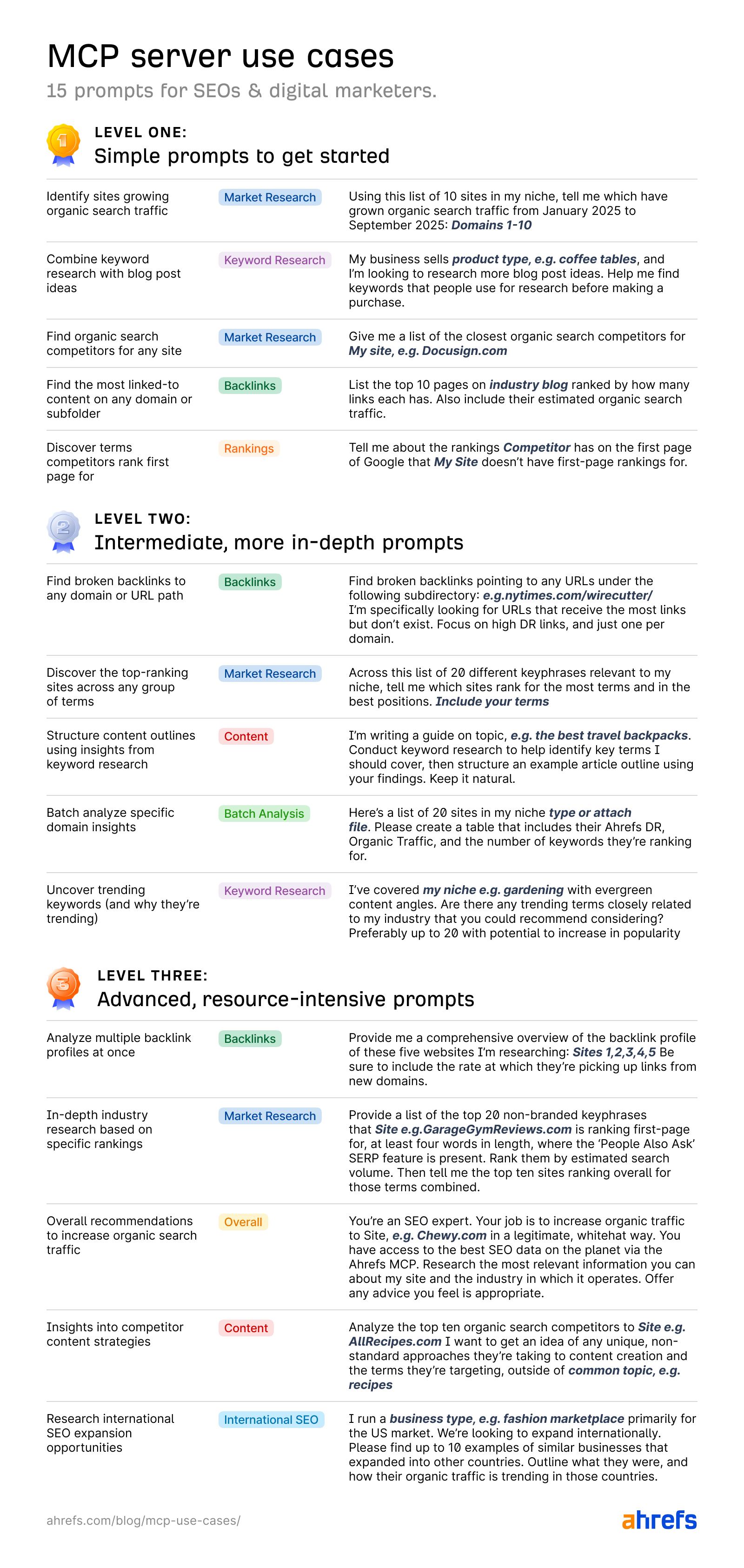 I view using the Ahrefs MCP server in a similar way: I gain new insights thanks to a different perspective that AI provides, and as a bonus, it enables me to scale operations that I already know how to perform.