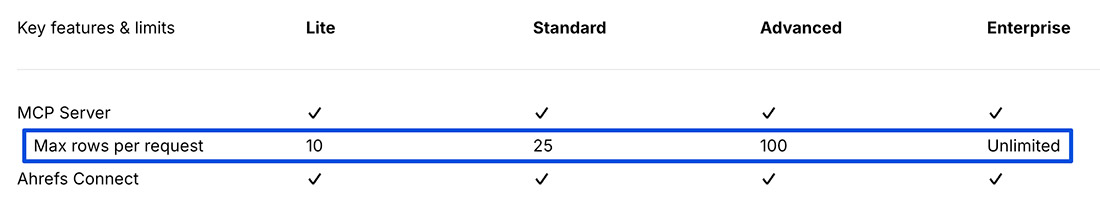 As a final note, your Ahrefs account level determines how many rows you can pull back for each request.