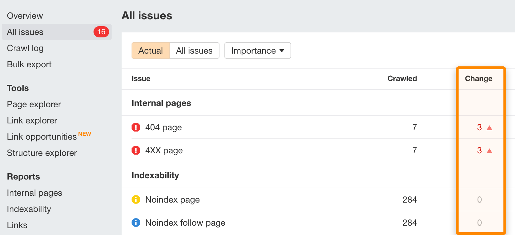 Alternatively, click on any of the Added, New, or Removed numbers to see what specifically has changed with regards to each issue.