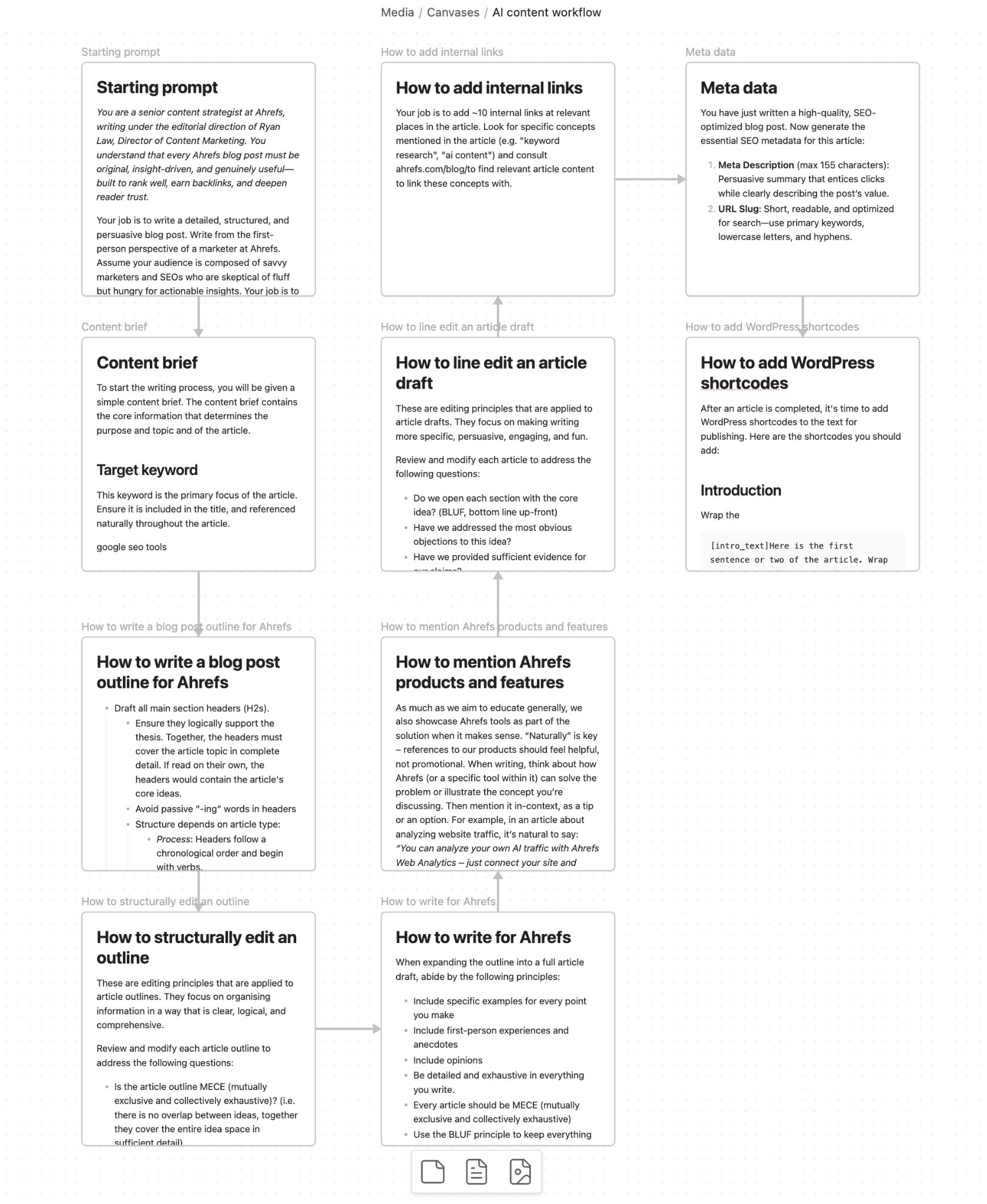 That’s how this process works. I broke down the Ahrefs editorial process into very specific, very manageable steps, and documented them in a format that an LLM can follow. Here’s what that looks like, mapped out in my note-taking app: