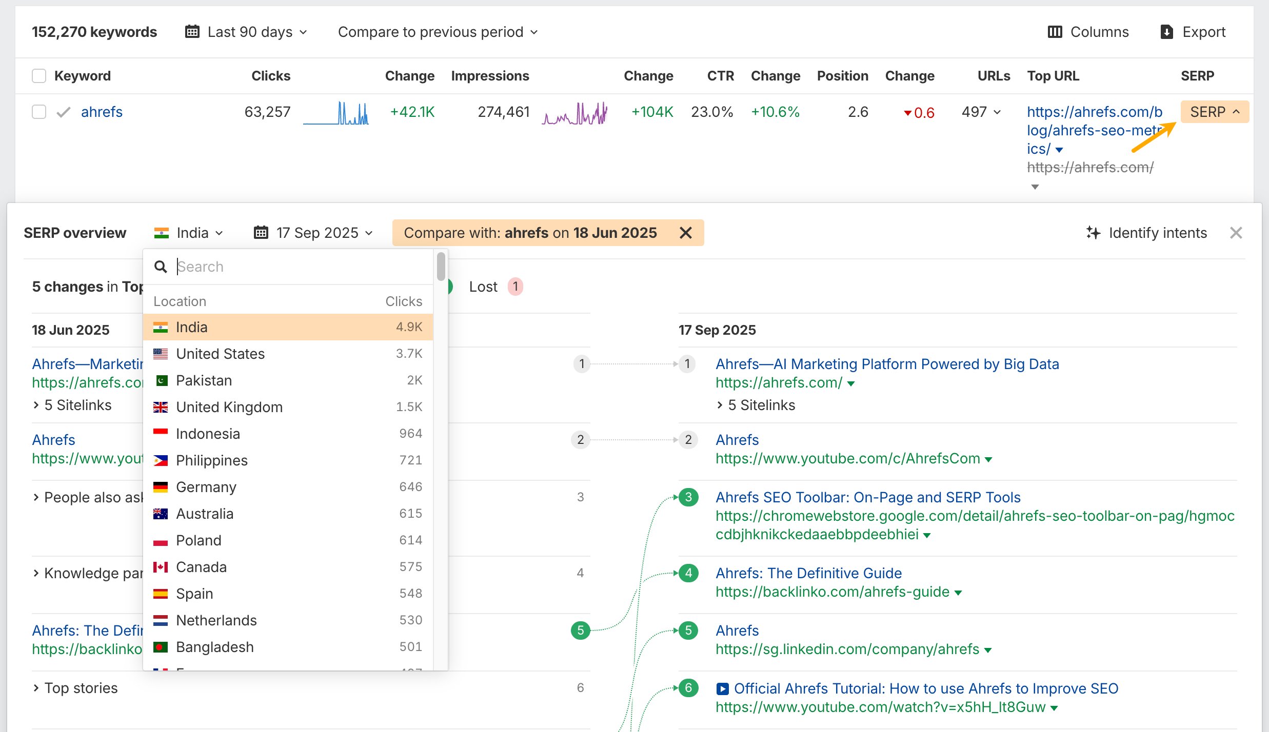 16 Sep: GSC reports gained a SERP Overview section so you can see how your GSC performance lines up with live search results from inside Ahrefs.