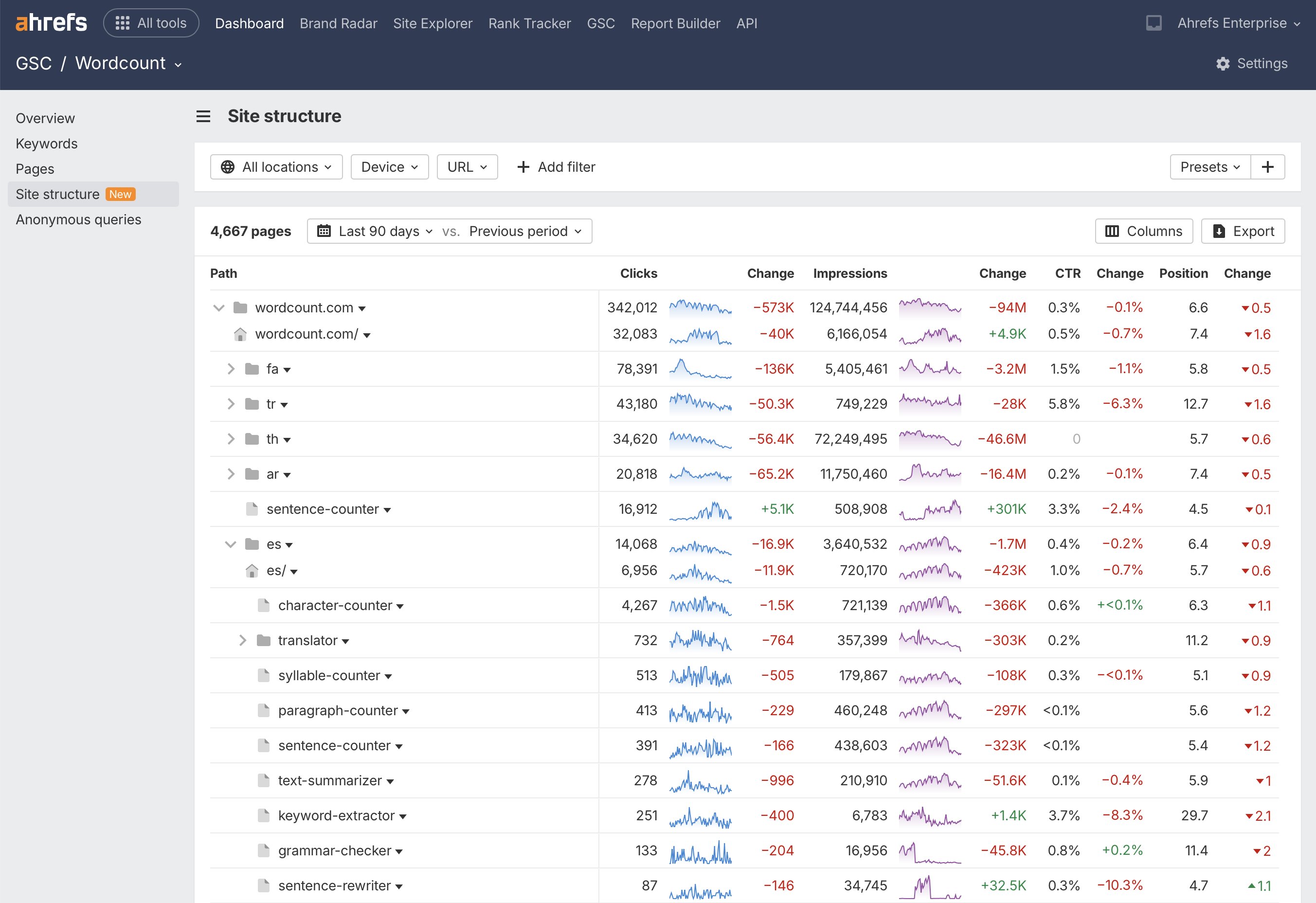 26 Feb: Instantly spot trends for clicks and impressions for both your keywords and pages with these sparkline charts – something GSC doesn’t show as easily. Available in: Rank Tracker’s GSC keywords and GSC pages reports.