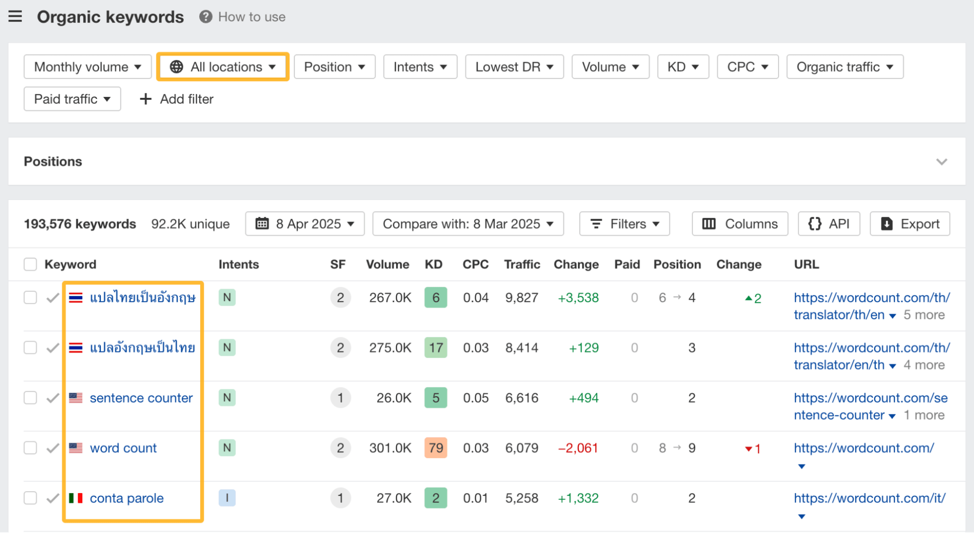 Over in the Organic keywords report, you can now view all your keywords across all locations in one place.