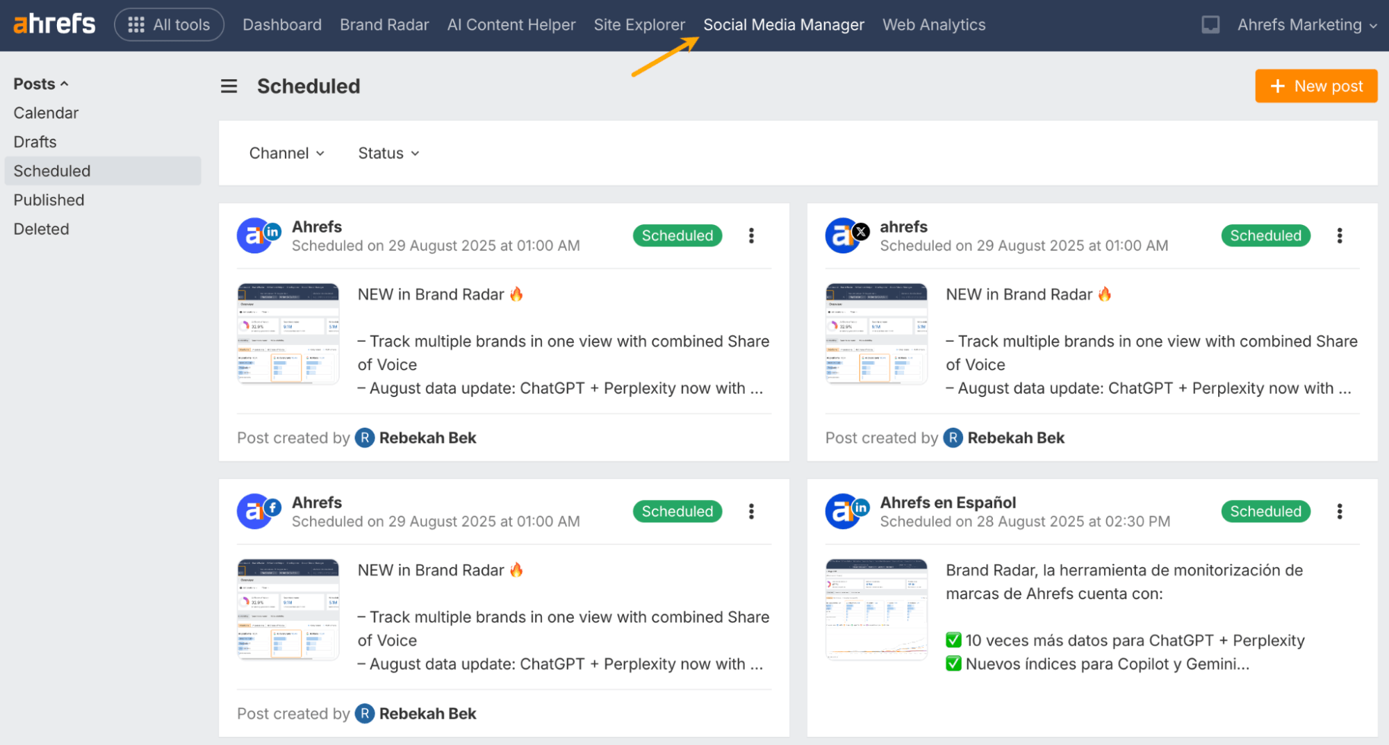 We’ve got 19 updates this month – from a new and improved Brand Radar to managing social posts inside Ahrefs, to broader AI visibility coverage.