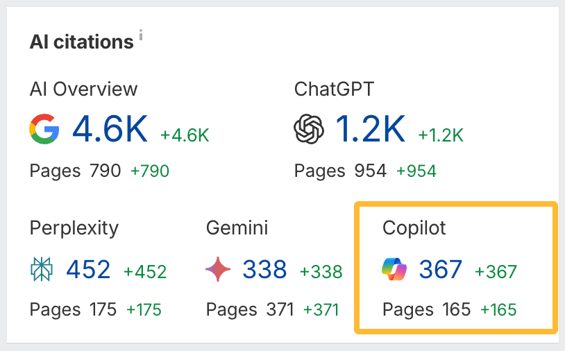 The AI citations widget at the top of Site Explorer’s Overview now includes Microsoft Copilot data from Brand Radar.