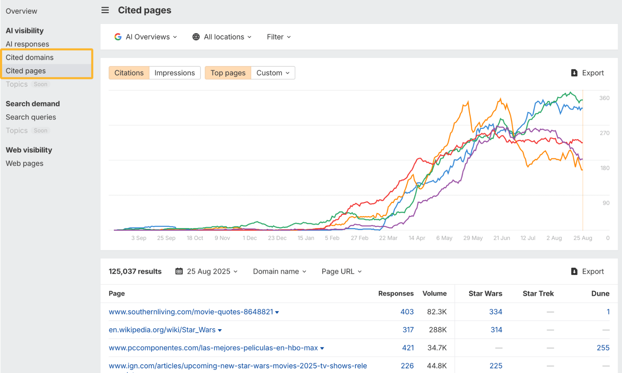 - Cited Pages – a URL-level view of those citations.