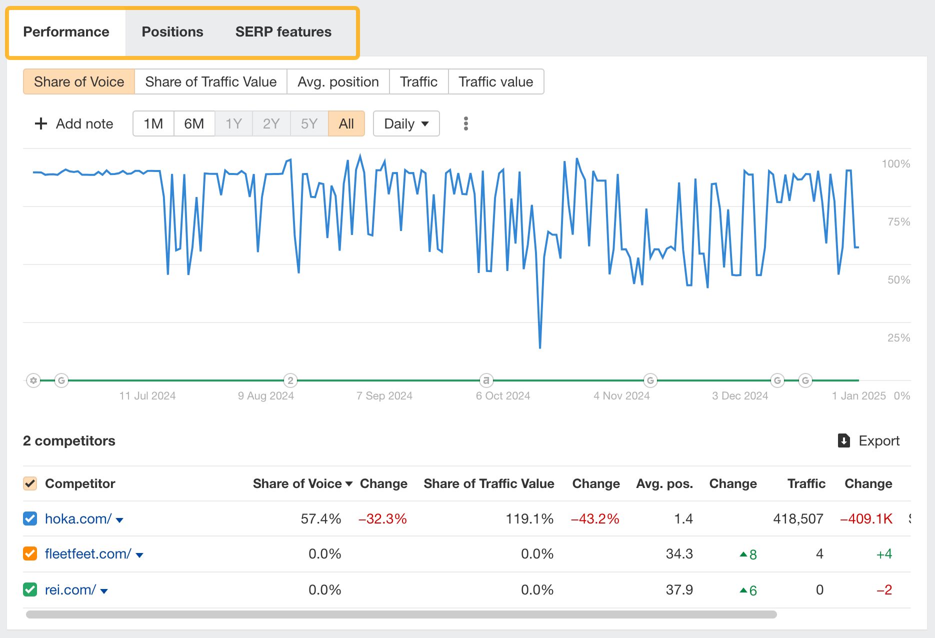 Use them to measure your brand’s popularity and visibility across organic search and see how valuable your content is compared to existing organic competitors in the market landscape.