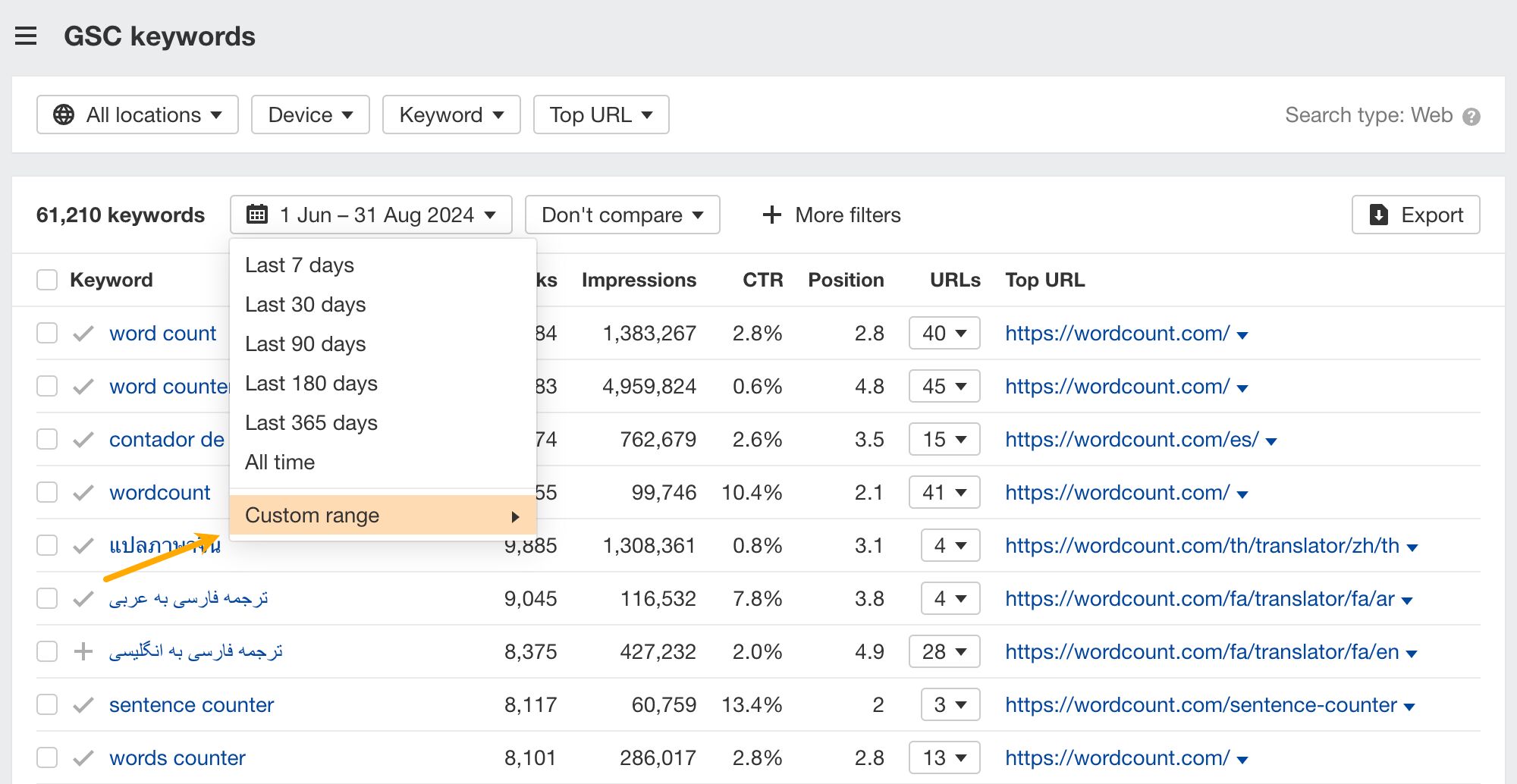 In all GSC reports, you can now use this date picker to see changes across custom ranges.