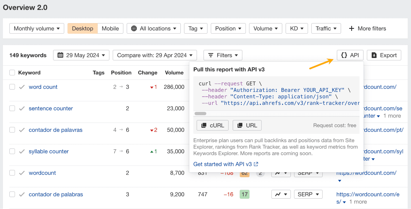 - Competitors Overview endpoint for Rank Tracker: provides rankings and estimated traffic that your competitors receive from the keywords you track.