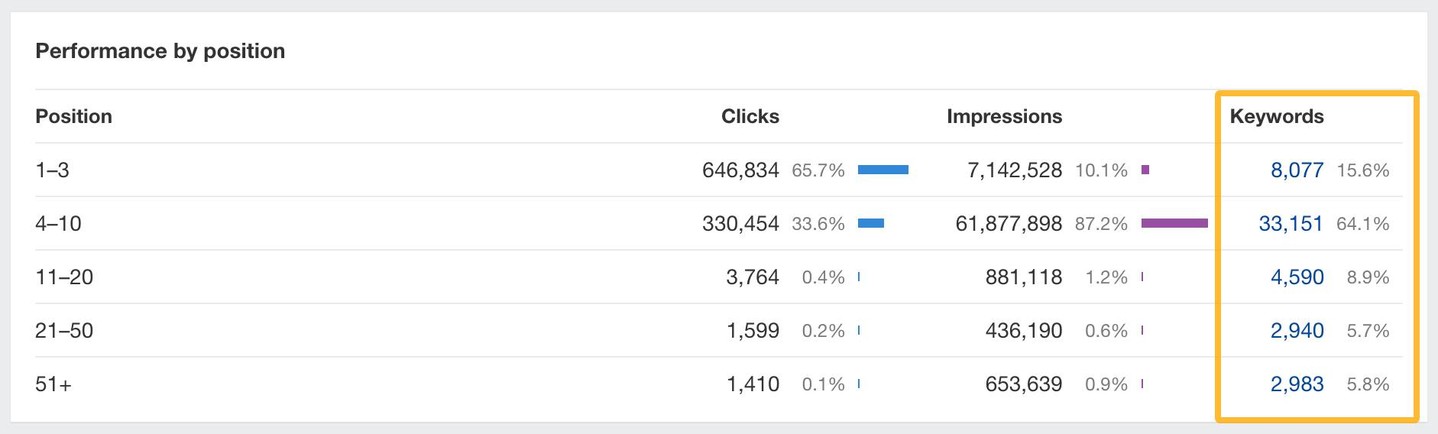 There’s a new widget that breaks performance down by position range – and shows which keywords are in each group.