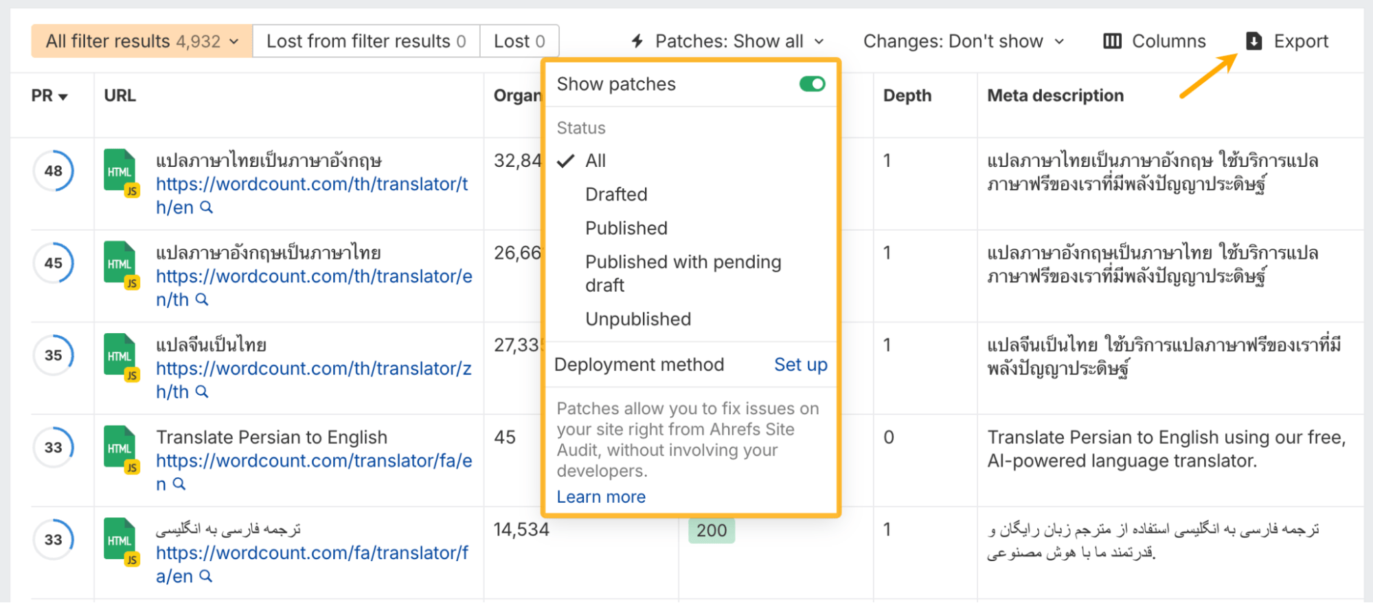 - Export patch data (titles and metas included)