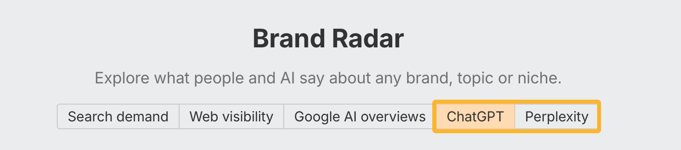 Brand Radar is officially out of beta! You can now track brand mentions in ChatGPT and Perplexity (Gemini’s coming soon).