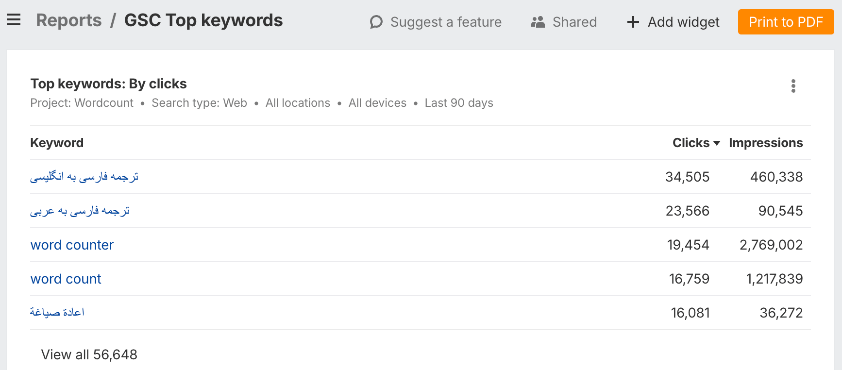 - GSC keyword widgets: top, lost, winners, losers, and new