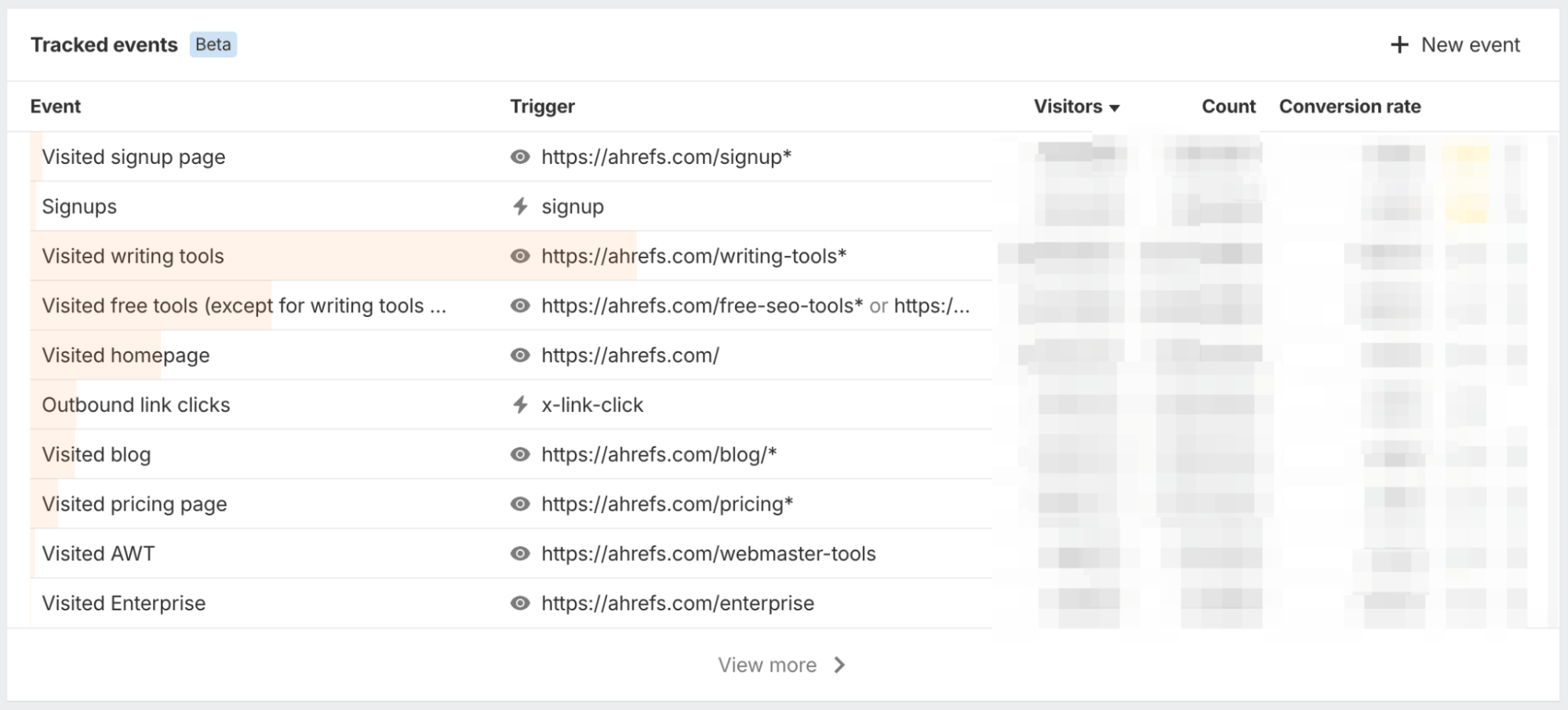 Track things like signups, button clicks, and form submissions – all you need to do is add a class name to your HTML. Learn more about setup here.