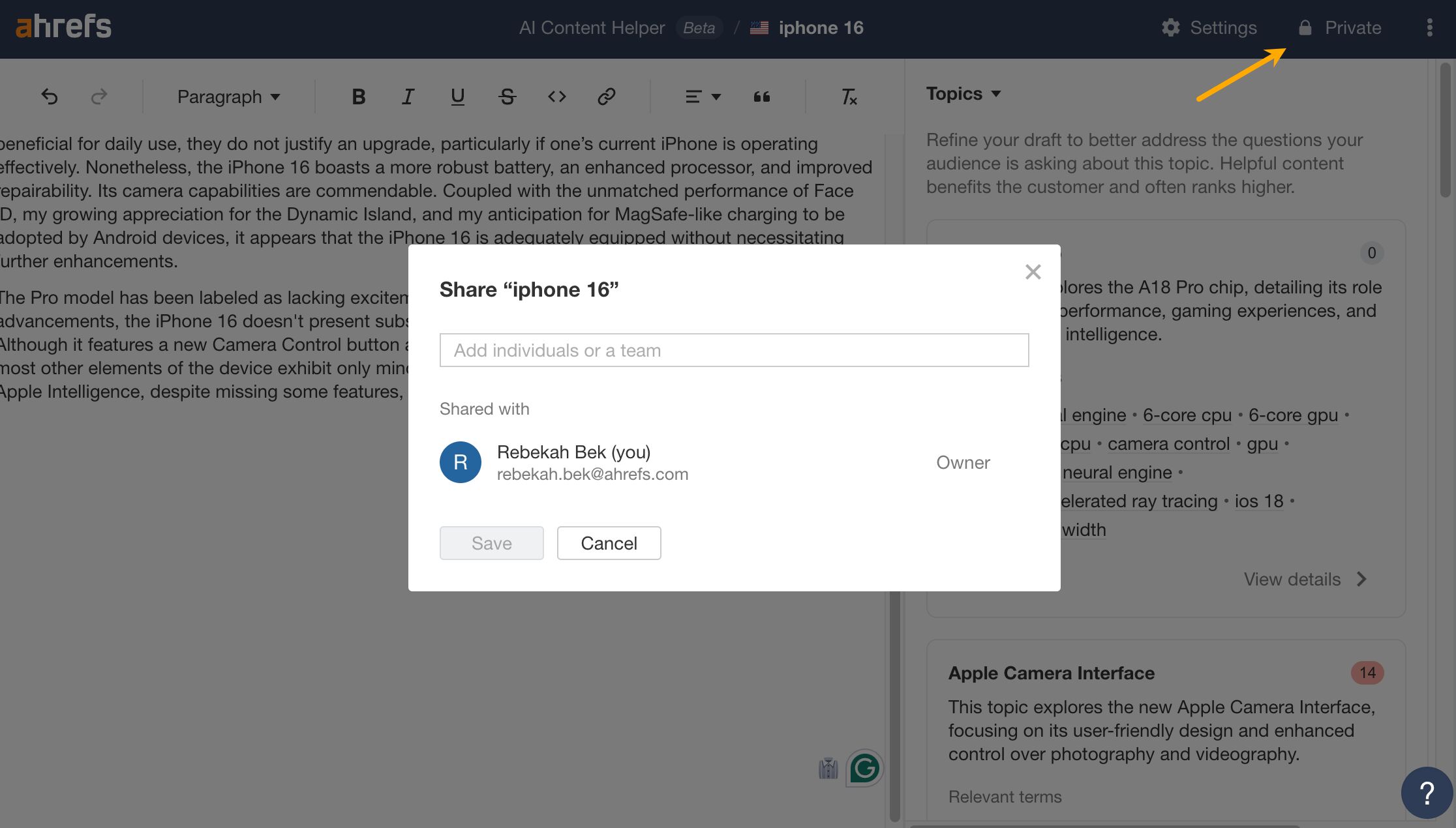 If you’re on an Enterprise plan, you can now manage access permissions in AI Content helper. You can: