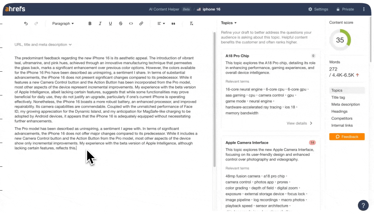 - Analyze both your content and your competitors’