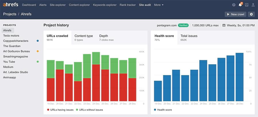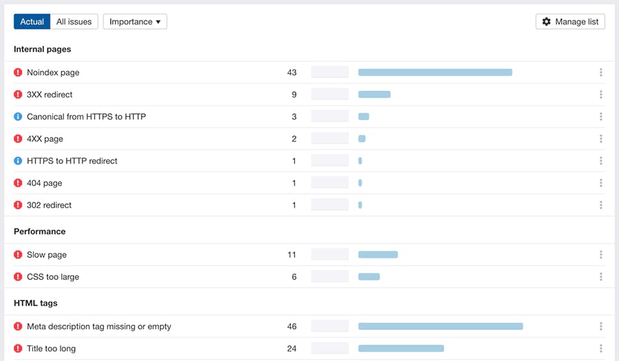 As of today, Ahrefs’ Site Audit tool will monitor your website for the 100+ most common SEO issues.