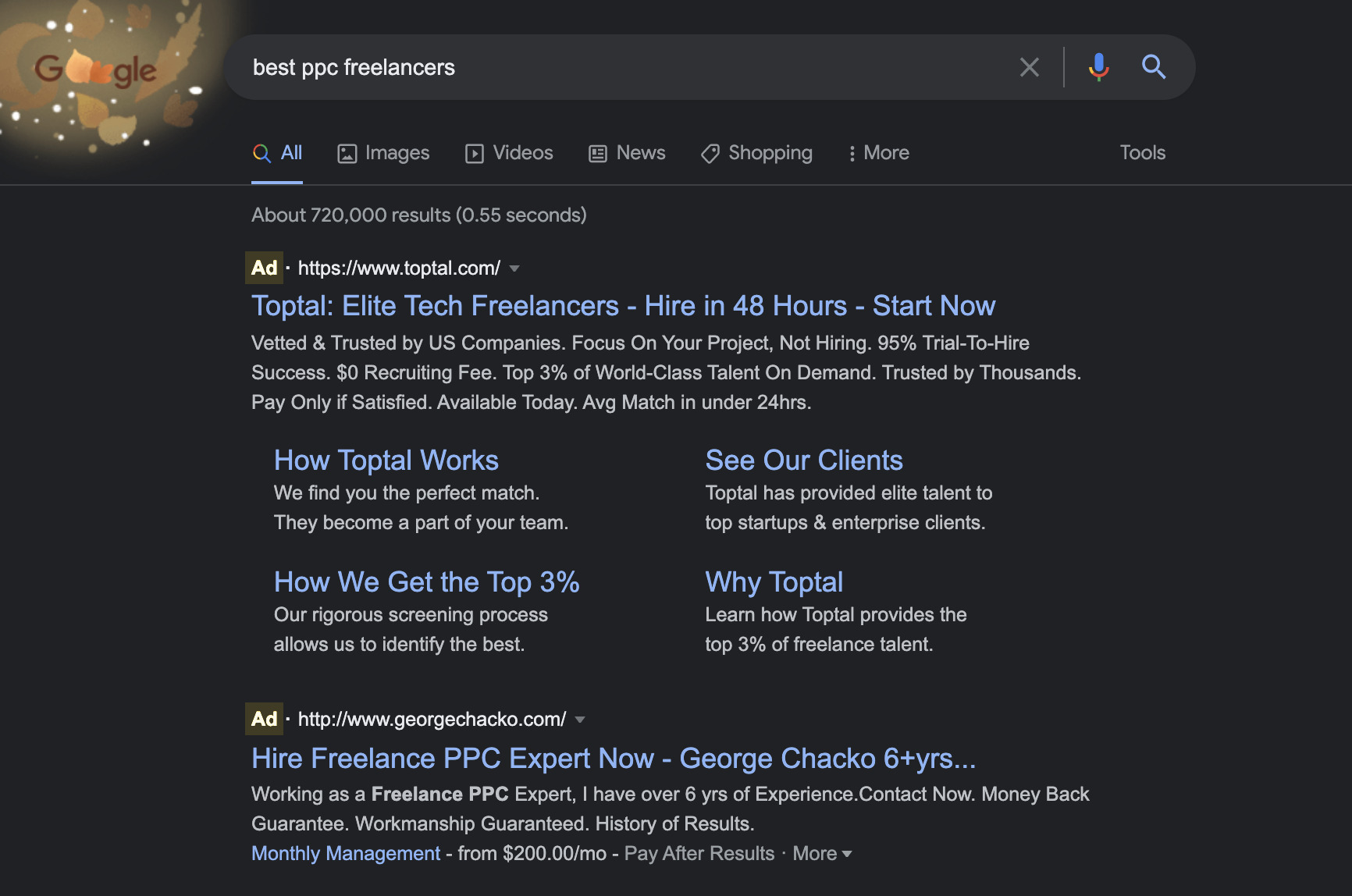 The ads can even take up the top four search results: