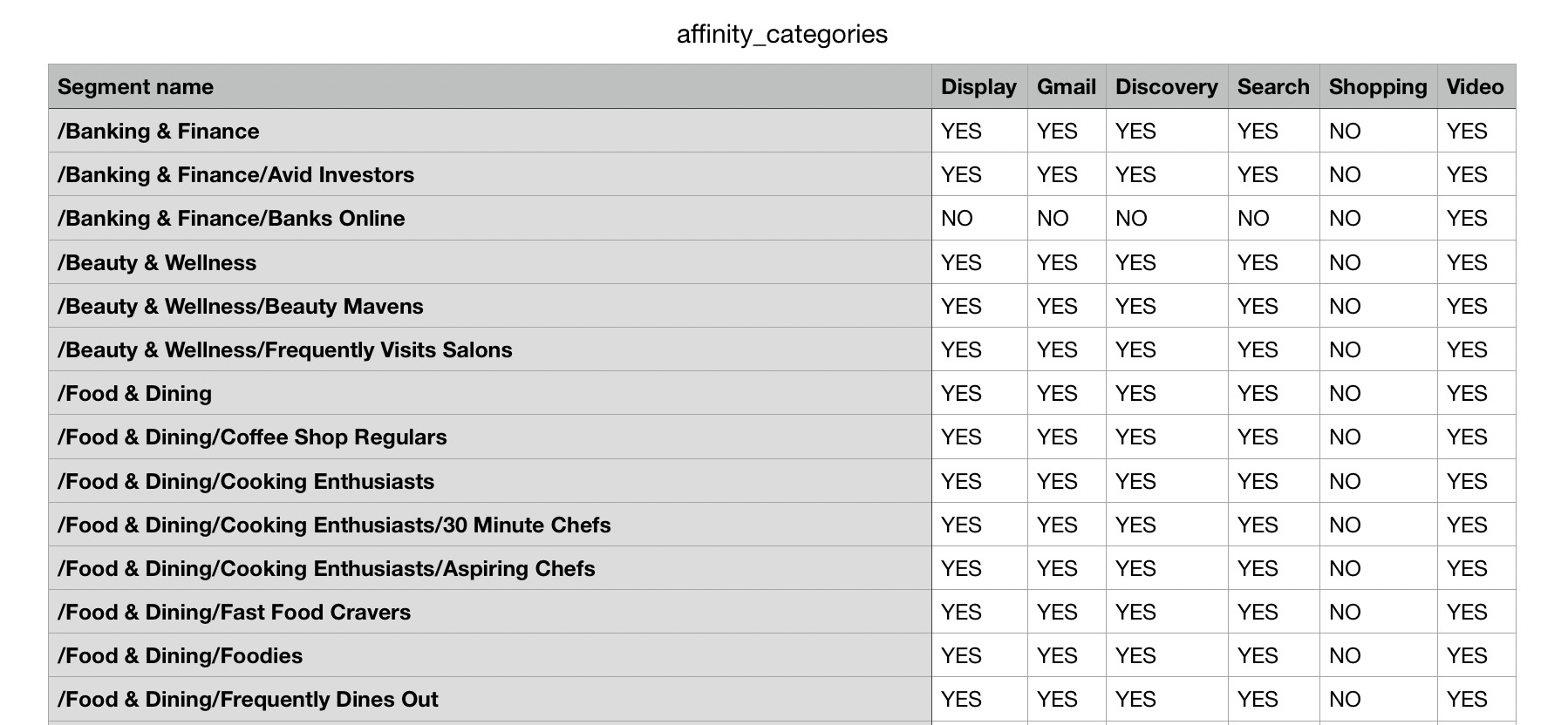 Here are some of the affinity categories: