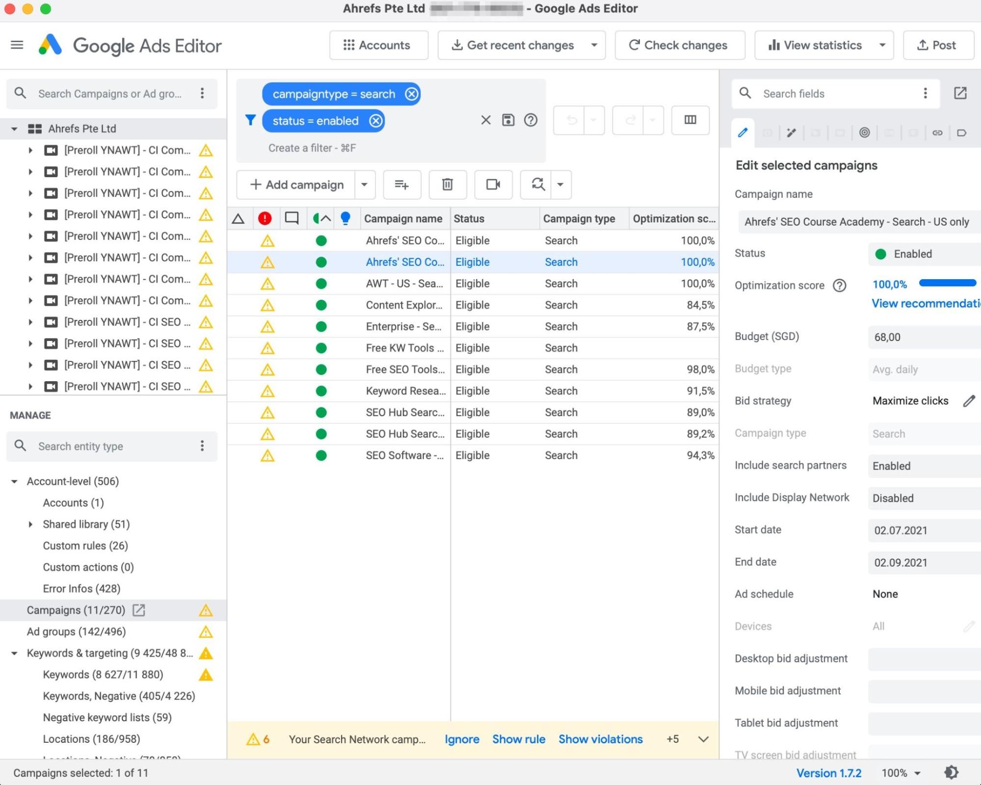 Many PPC specialists don’t even use the web interface much. Google provides a desktop app called Google Ads Editor that facilitates campaign management and allows you to save a huge amount of clicks and time.