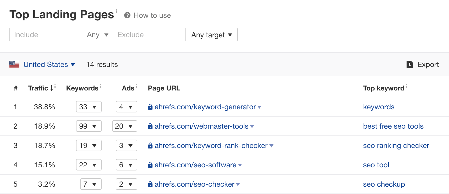 You can get this data in Ahrefs’ Keywords Explorer. Just type in a few (seed) keywords that capture the nature of your business and product offering and go from there.