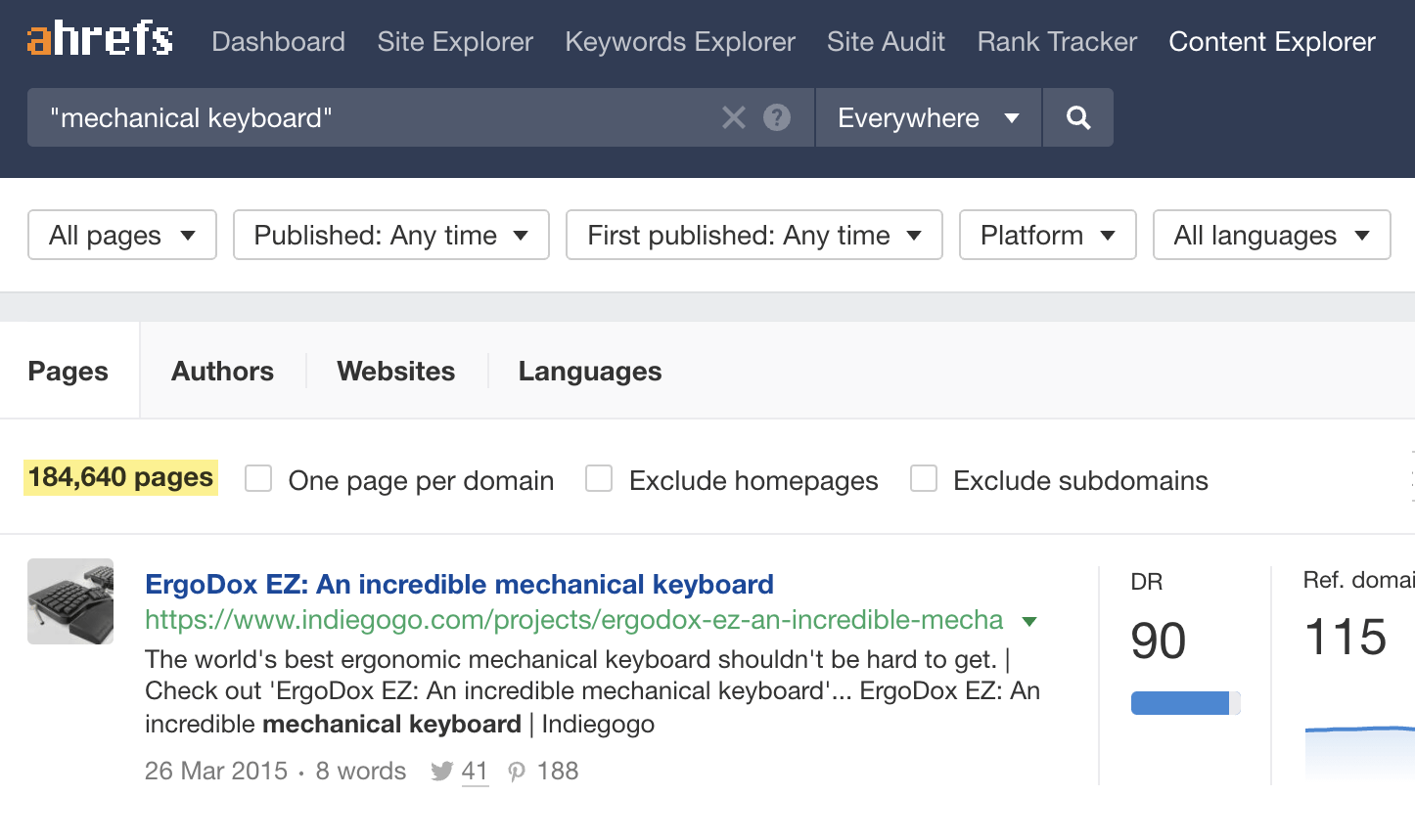 E não há maneira melhor de encontrar essas páginas do que com o Explorador de Conteúdo da Ahrefs.