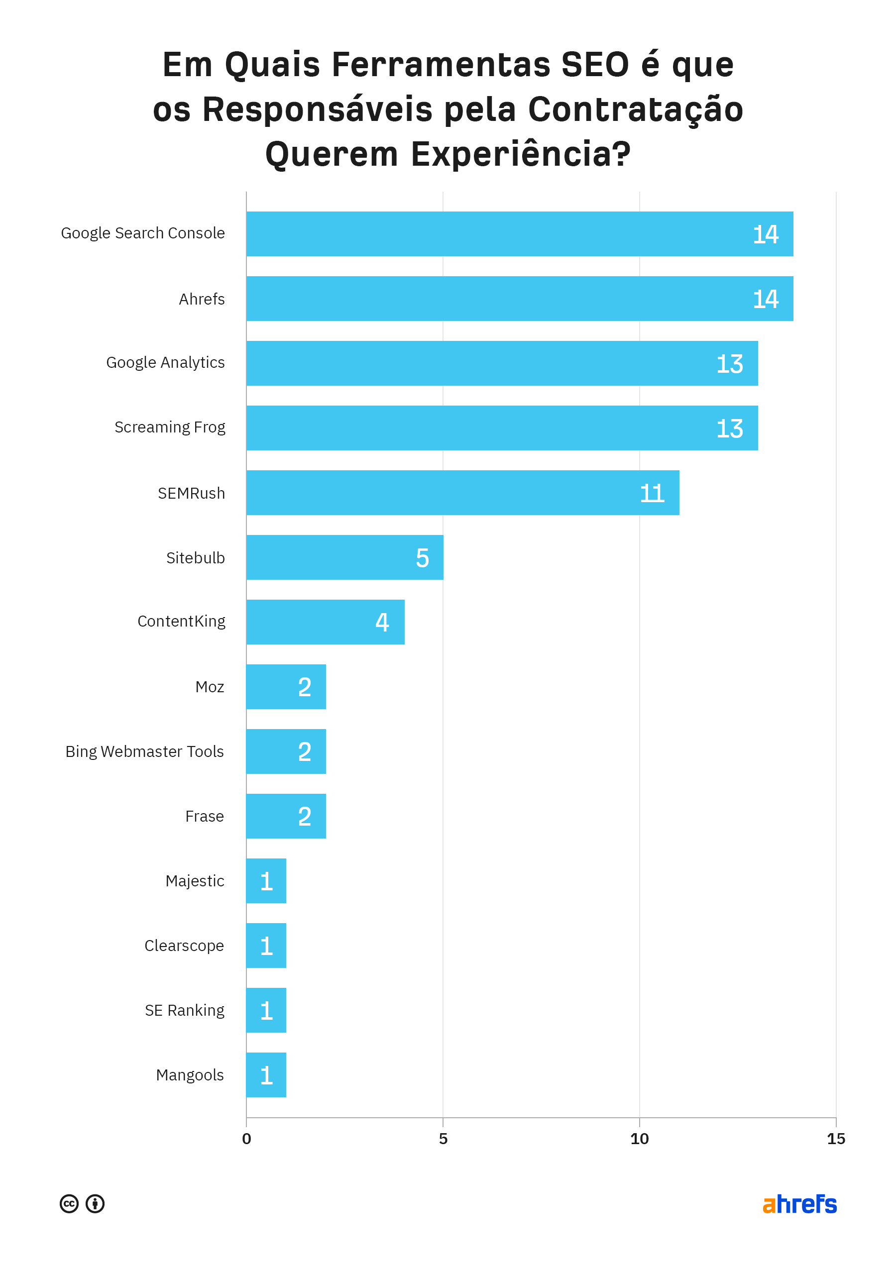 Além de anos de experiência no setor, a maioria dos entrevistados também prefere que o seu especialista em SEO tenha alguma experiência com ferramentas de SEO.