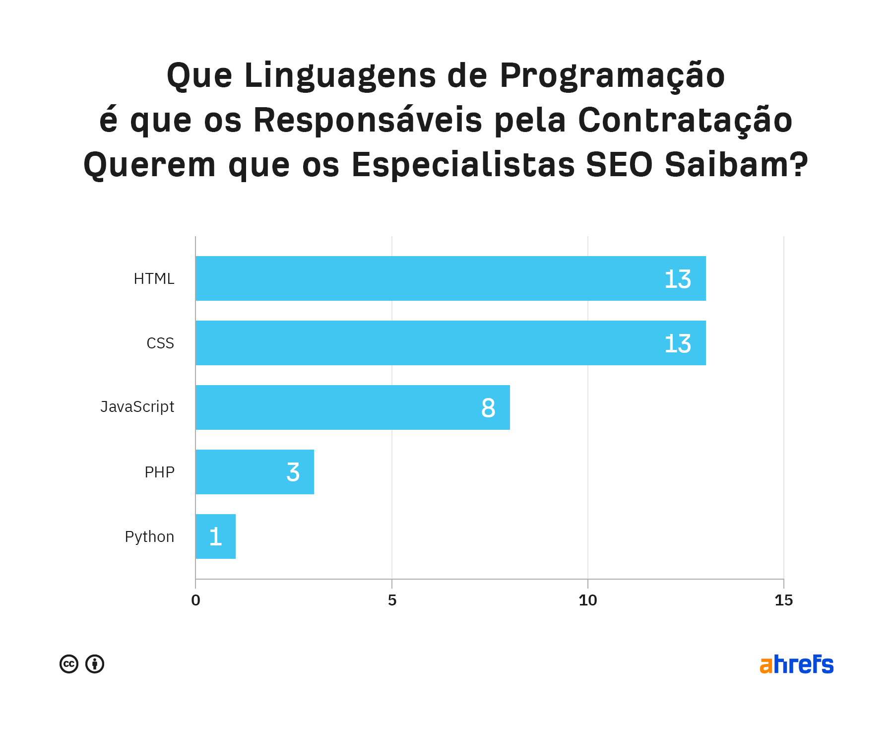 Curiosamente, podemos ver que as habilidades com as quais a maioria, senão todos os entrevistados, concordaram são soft skills (por exemplo, atenção aos detalhes, mentalidade baseada em dados, comunicação) ou atitude (por exemplo, paixão por SEO e marketing na Internet).