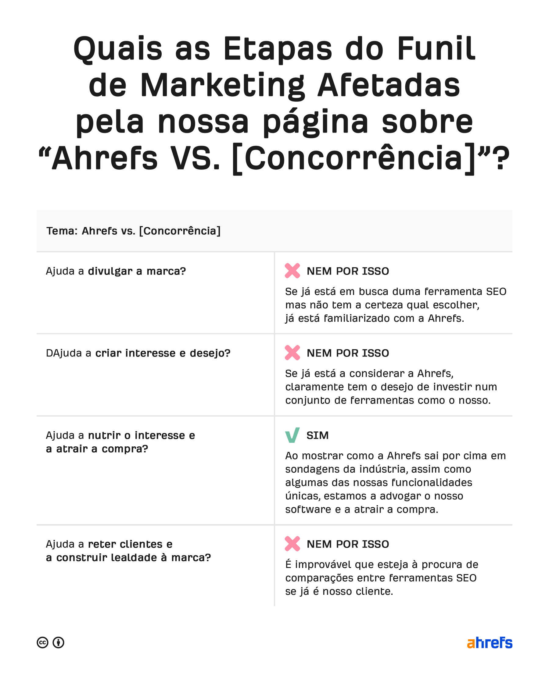 Por exemplo, veja a nossa página “Ahrefs vs.”. Esta página explica o que a indústria pensa da Ahrefs em comparação com os nossos concorrentes e mostra algumas das nossas funcionalidades exclusivas.