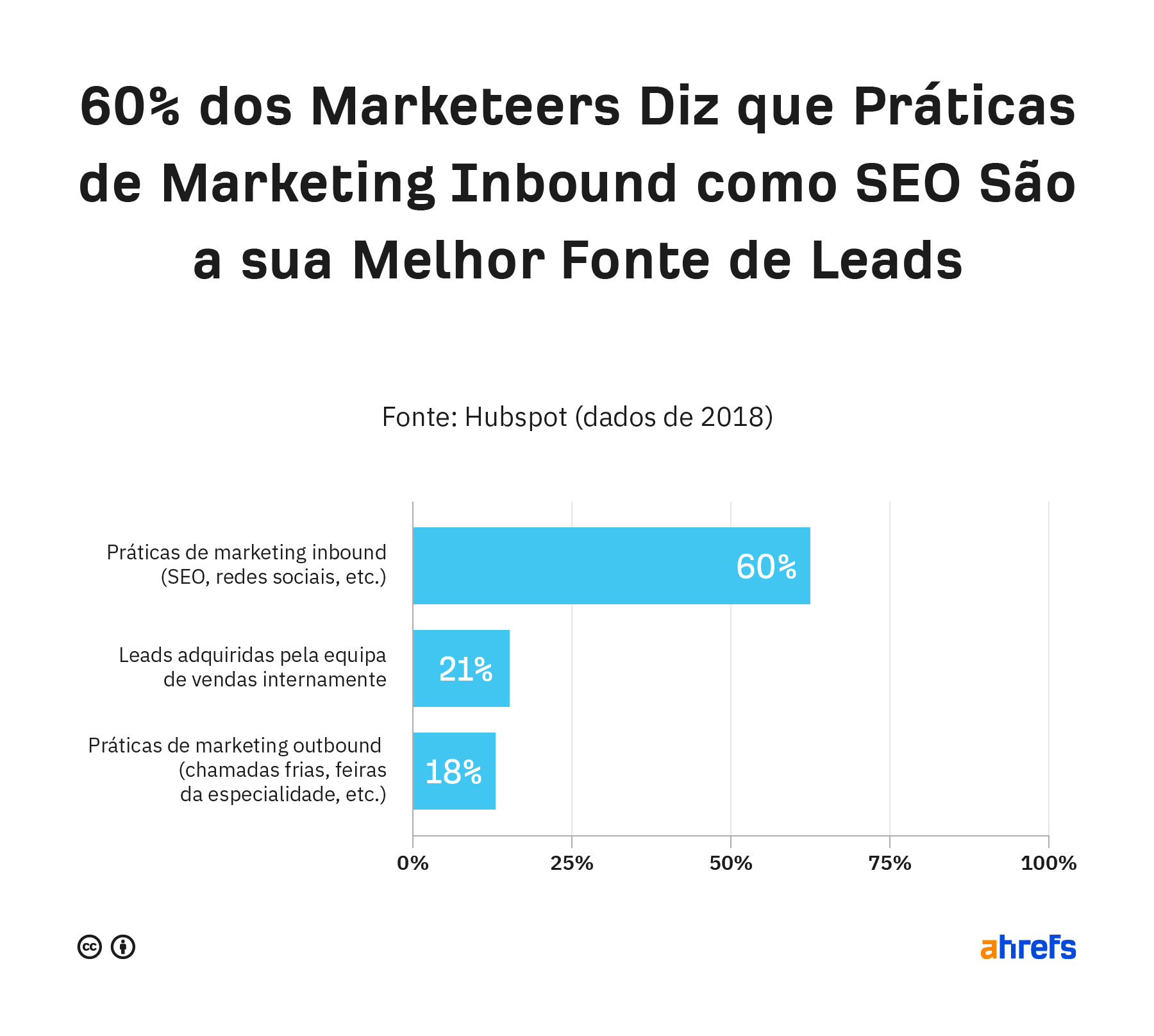 Também pode usar a “prova social” a seu favor. Por exemplo, pode mostrar que 60% dos profissionais de marketing dizem que as práticas de inbound marketing, como SEO, são a sua fonte de leads de mais alta qualidade: