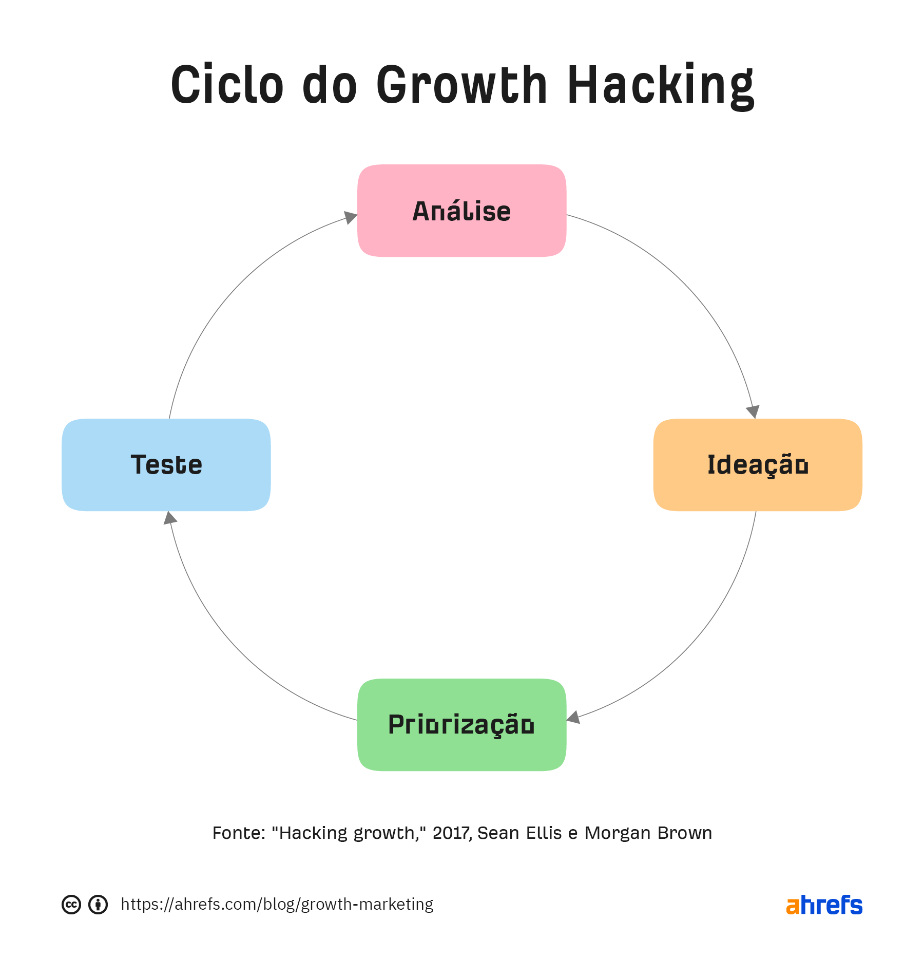 Equipas de marketing de crescimento focam-se no que é geralmente conhecido como ciclo de “hacking de crescimento”.