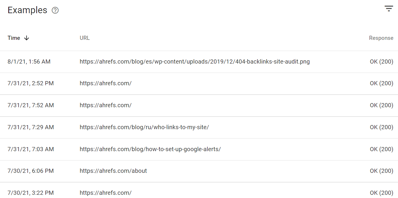 Também há etiquetas de data/hora de quando as páginas foram rastreadas pela última vez.