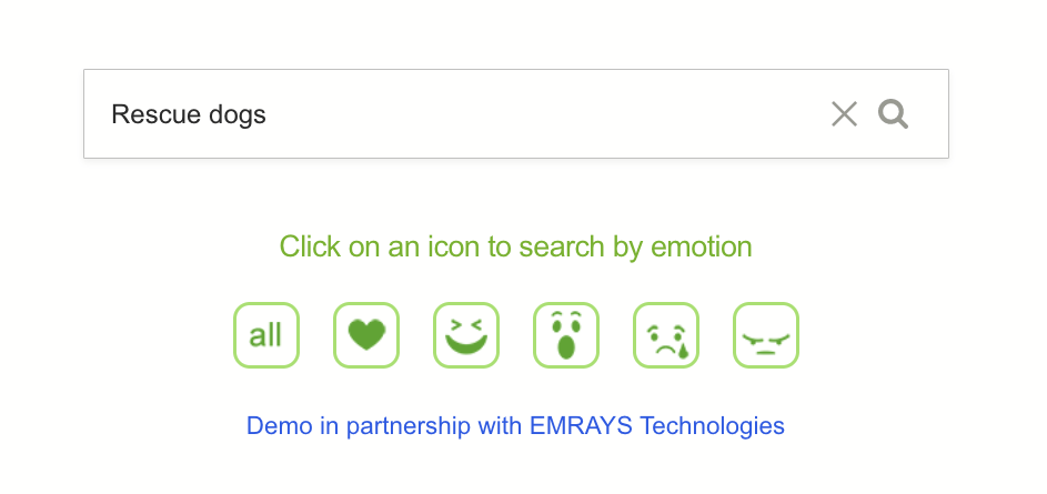O recurso de classificação de pesquisa com base na emoção do usuário permite inserir uma palavra-chave e pesquisar por “sentimento ou emoção” gerados.