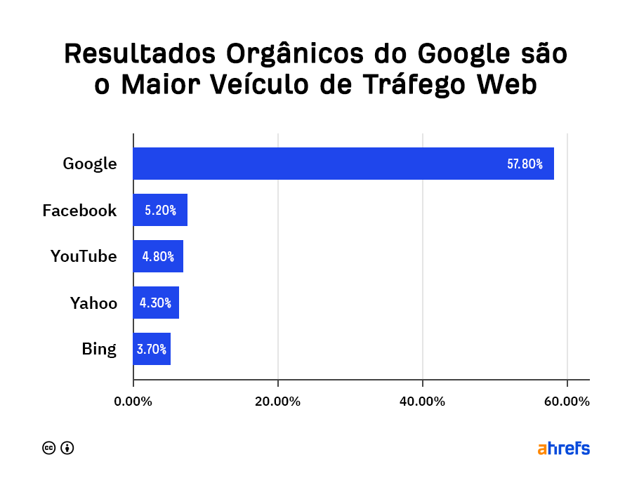 A maioria do tráfego da web vem dos resultados orgânicos do Google.