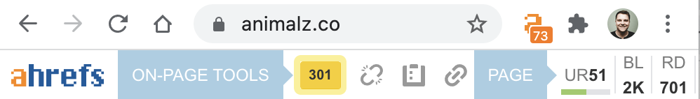 Existem algumas maneiras de verificar se o seu website está a ser redirecionado corretamente de HTTP para HTTPS. A primeira é instalar e ativar a Barra de Ferramentas de SEO da Ahrefs e, em seguida, tentar navegar para a versão HTTP da sua própria página inicial, que deverá redirecioná-lo para ver um código de resposta 301 na barra de ferramentas.