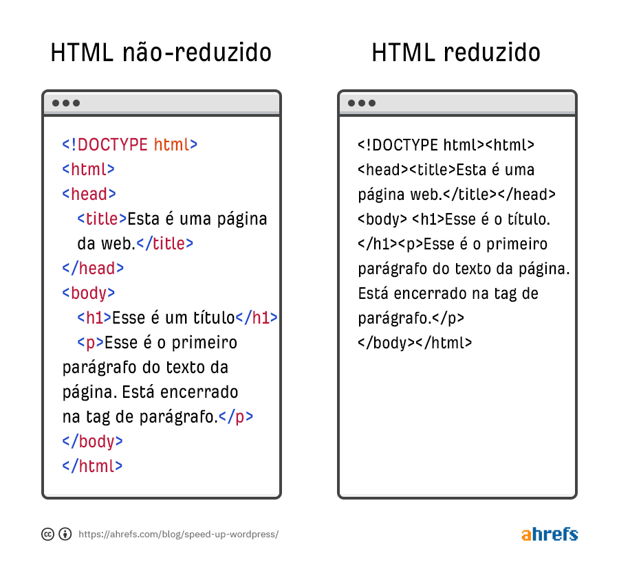 A minificação (ou redução) remove o espaço em branco desnecessário do seu código para reduzir o tamanho dos arquivos.