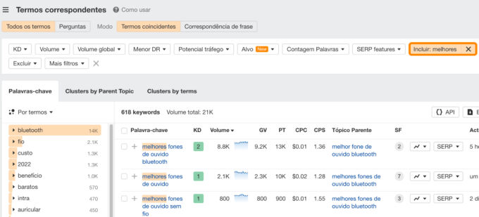 - Adicione no filtro Include algo que inclua a palavra “melhor”