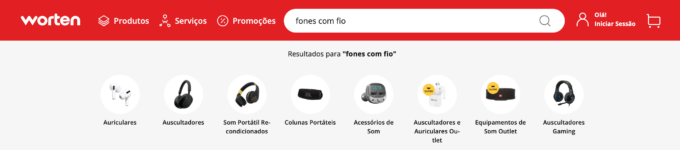 Por exemplo, a categoria “fones” pode ter subcategorias como “com fios” e “sem fios”.