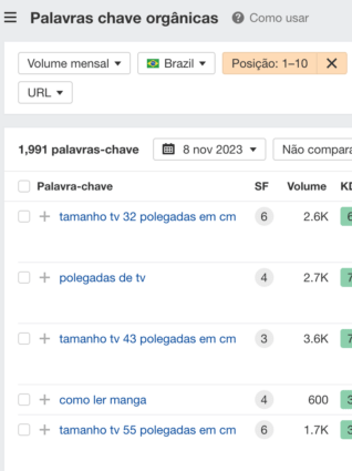 Em Keywords Explorer, pode encontrar este tipo de palavras-chave na seção Perguntas depois de adicionar a sua palavra-chave.