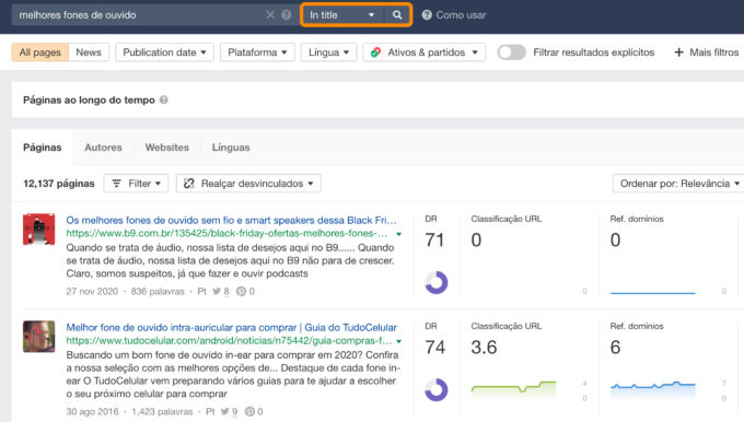 Se você vender estes fones, a sua página de produto já tem essa palavra-chave como alvo.