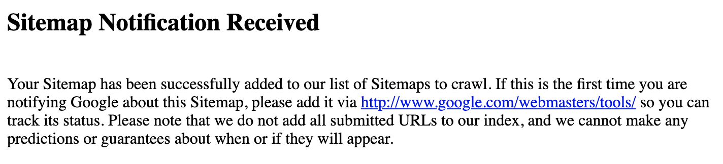 Você deverá ver a página de “notificação de sitemap recebido”.