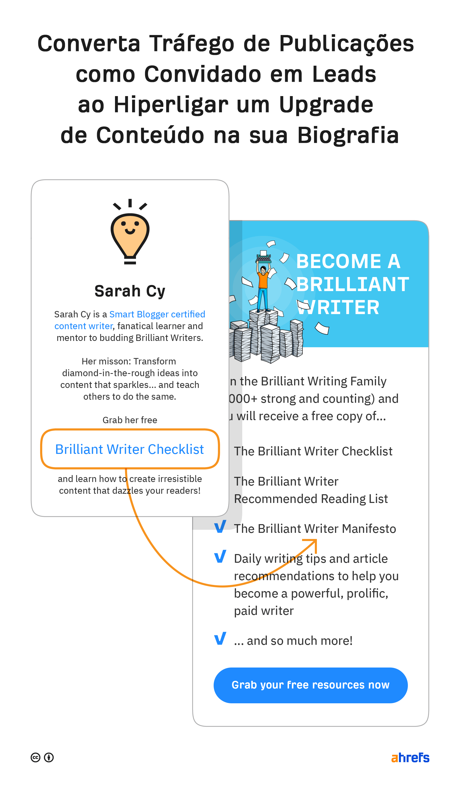Por exemplo, Sarah Cy escreveu uma publicação como convidada para o Smart Blogger com uma ligação para a sua lista de verificação gratuita: