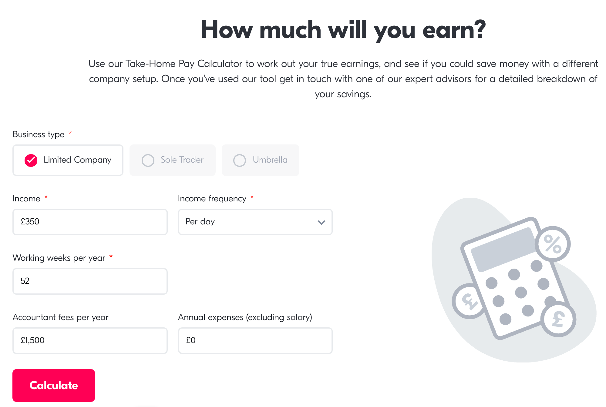 No entanto, não desanime se não vende software. Pode criar uma ferramenta onde ela resolve um problema relacionado com um serviço que fornece ou com um produto que vende. Por exemplo, a Crunch fornece serviços de contabilidade e oferece uma calculadora de pagamento para levar para casa gratuitamente.