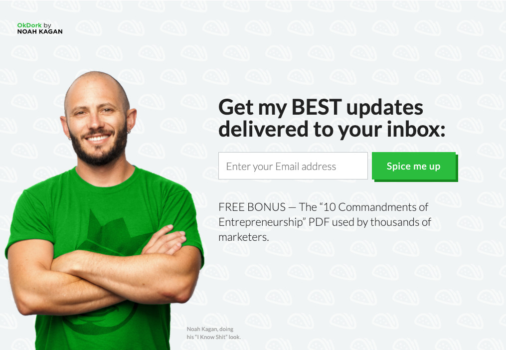 Uma advertência: não salte logo para esta tática porque viu os seus profissionais de marketing favoritos a fazerem-no. Depende da sua estratégia — pode ser uma boa ideia se quiser mais leads e vender através da sua lista de e‑mail. Mas se for uma empresa de SaaS como nós, convém reservar a sua página inicial para explicar a sua proposta de valor.