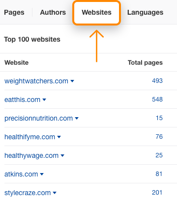 Caso contrário, vá ao Explorador de Conteúdo da Ahrefs e insira um tópico amplo como “perda de peso” ou “dieta”. O Explorador de Conteúdo é um mini motor de pesquisa da Ahrefs. É alimentado pela nossa base de dados de cinco mil milhões de páginas e pode usá-lo para encontrar menções a qualquer coisa na web.